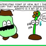 Morumoru-kun seemed to be depressed after hearing Warabi-kun's theory that "Morumoru-kun originated from rakkyo."