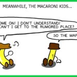 Macaroni Kid and Penne Boy are searching for a place where a rumor has it that a huge amount of mayonnaise is growing, but it seems they can't find it because their map is fake.