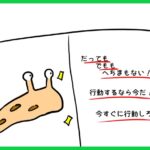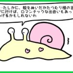 殻をぬぎたいかたつむりが、殻をぬいだかたつむりの名言集を読んでいるよ。これでやる気が出るのかな?どうなのか様子を見てみよう!