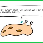 The snail's house is filling up with collected shells! If he doesn't stop collecting them soon, he might run out of space! The snail seems to know this, but is it really okay?